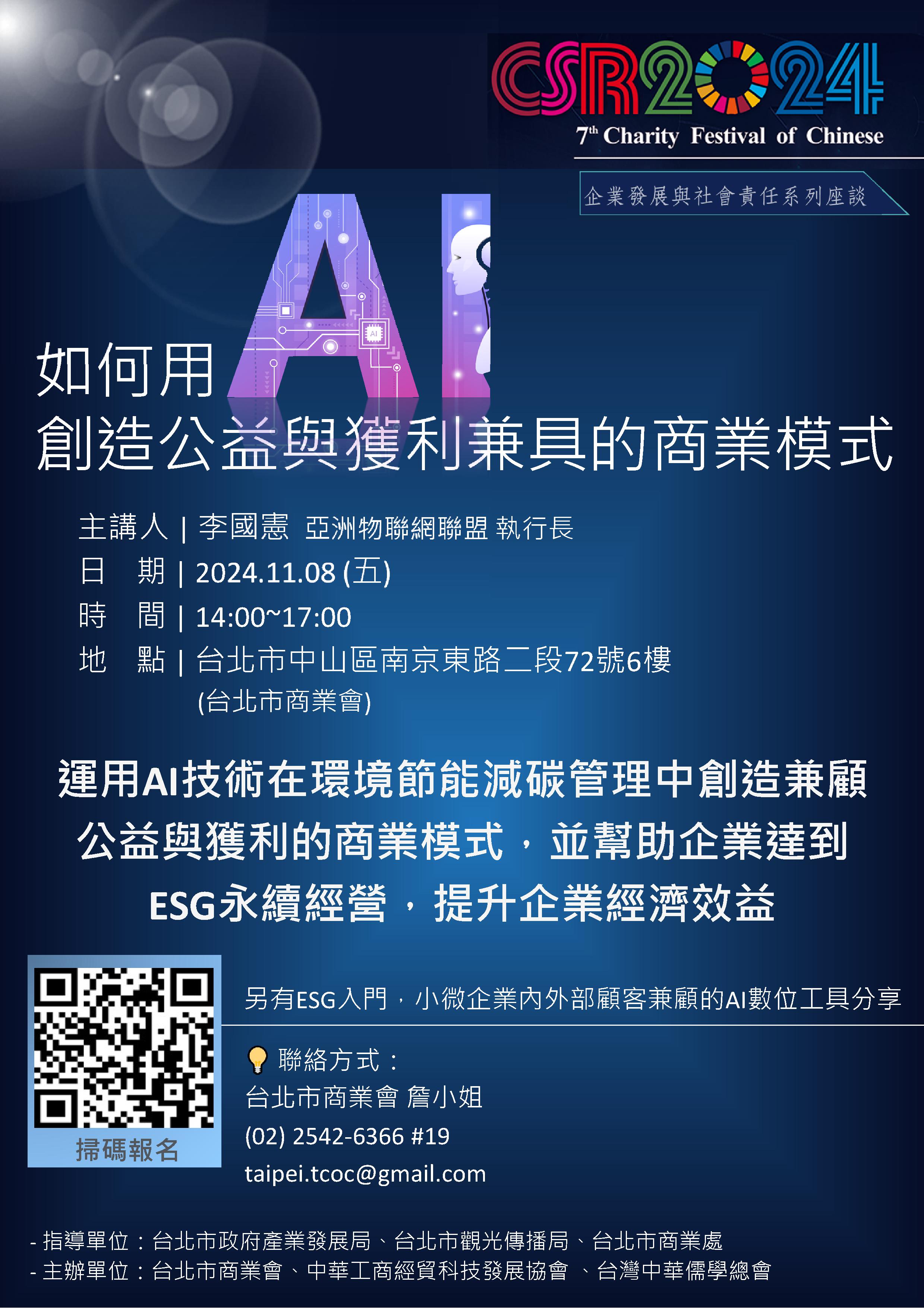 主 題:如何用AI創造公益與獲利兼具的商業模式